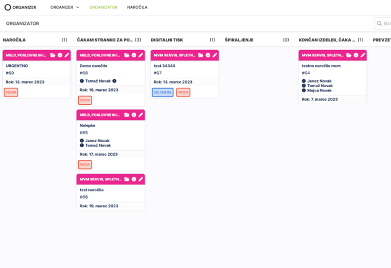 Z rešitvijo Organizer si poenostavite organizacijo delovnih procesov znotraj podjetja in pohitrite poslovanje.