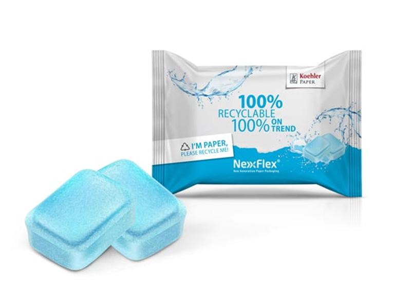 Gibki embalažni papir Koehler NexPlus Seal WVB proizvajalca Koehler Paper je zaradi nepropustnosti vodne pare primeren tudi za pakiranje detergentov za pomivanje posode in perila ter za izdelavo embalaže za izdelke kopanja, tuširanja in podobno. (Vir: Koehler Group)