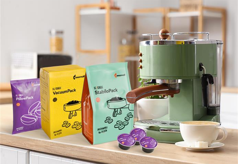 Raznolikost za kavno industrijo: Mondi je na sejmu HOST Milano 2025 predstavil različne možnosti embalaže, vključno s PillowPack, VacuumPack, StabiloPack in kavnimi kapsulami – vse trajnostno zasnovane in reciklabilne. (Vir: Mondi)